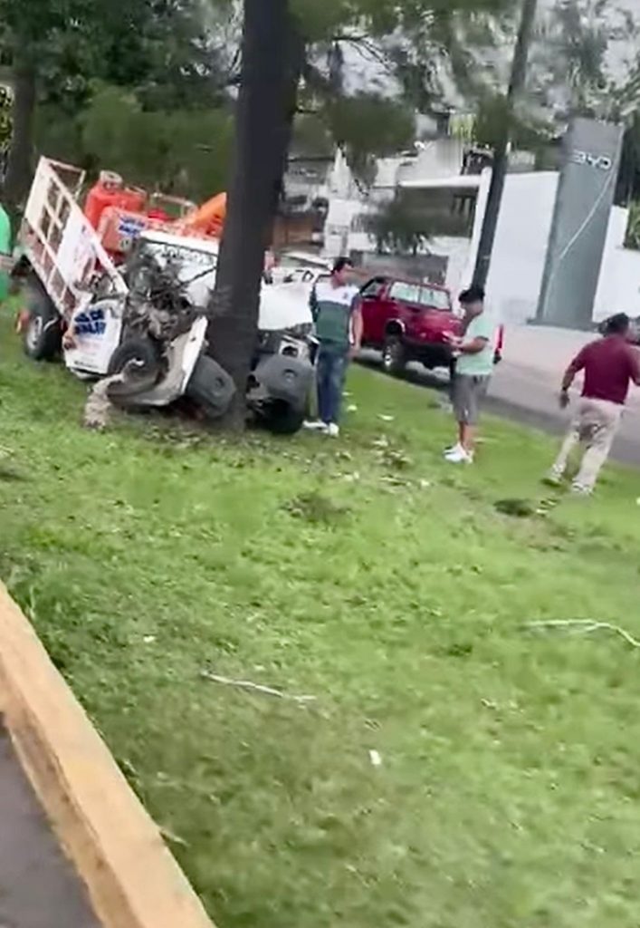 Según versiones recabadas en el sitio, la camioneta, perteneciente a la empresa Gas de Xalapa, presuntamente circulaba a velocidad inmoderada, lo que habría provocado que el operador perdiera el control de la unidad.