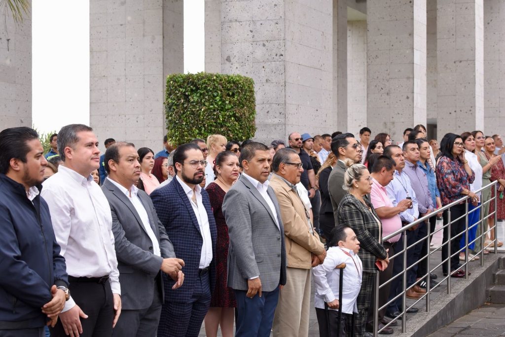 En este acto cívico se contó con la participación de la escolta y la banda de guerra del Sindicato Único de Trabajadores al Servicio del Poder Legislativo (SUTSPL) y la asistencia del secretario general, Domingo Bahena Corbalá; la secretaria de Fiscalización, Alma Leticia Patiño Gabriel; el secretario de Servicios Administrativos y Financieros, Alfredo Alberto Martínez Gómez; el director de Recursos Humanos, Francisco Javier Ramírez Hernández; la directora de Recursos Materiales y Servicios Generales, Ana Patricia González Bautista y la directora de Tesorería, Iveth Martínez Hernández, así como coordinadores, directores, jefes de departamento y personal administrativo de las diversas áreas del Congreso del Estado.