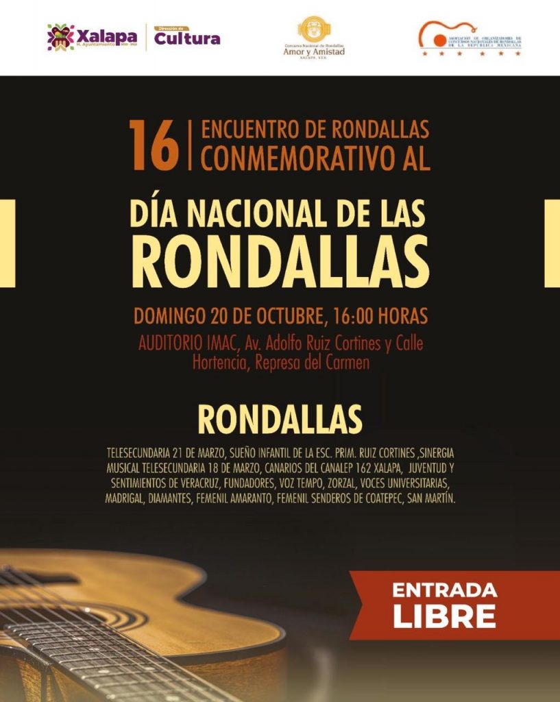 Xalapa, Ver.- El Ayuntamiento de Xalapa, a través de la Dirección de Cultura, celebrará el Día Nacional de las Rondallas con el concierto “Las voces y guitarras que le cantan al amor”, este martes 15 de octubre a las 18:30 horas en Palacio Municipal, evento que reunirá a 15 agrupaciones locales y de otras ciudades del país.