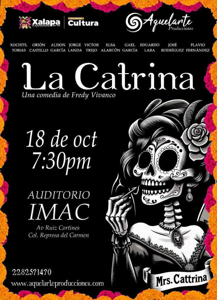 Por otro lado, este lunes 14 de octubre a las 17:00 horas, en el Centro Recreativo Xalapeño (CRX), Amigos de los Animales Xalapa impartirá el taller de elaboración de catrinas; a la misma hora, pero en el Teatro J.J. Herrera, Ilayali Santos Rivera presentará el evento “La magia de Frozen”.