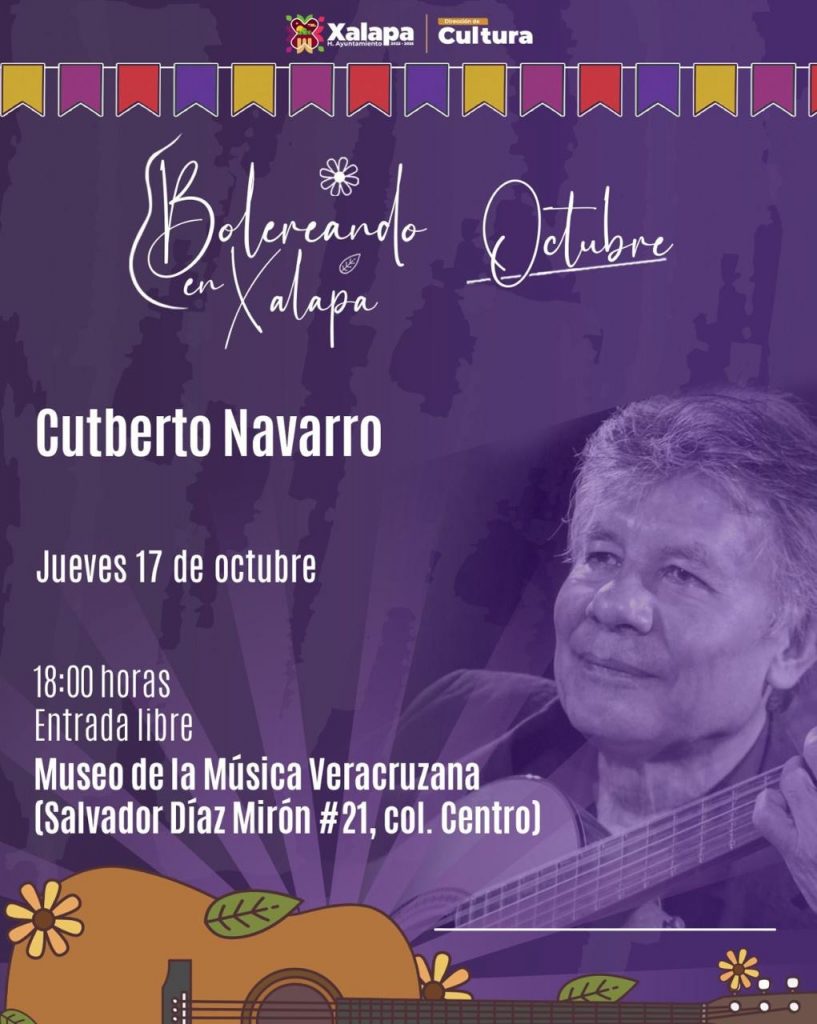 El jueves 17 de octubre a las 17:00 horas, “Los tropicosos” podrán su sabor a “Las Tardes de Xallitic”, y en el MUXA, será el turno del evento “El poder de la visualización”; a las 18:00 horas, Cutberto Navarro estará “Bolereando” en el Museo de la Música Veracruzana, y la Orquesta Pauta Nueva se presentará en la Secretaría de Infraestructura y Obras Públicas.