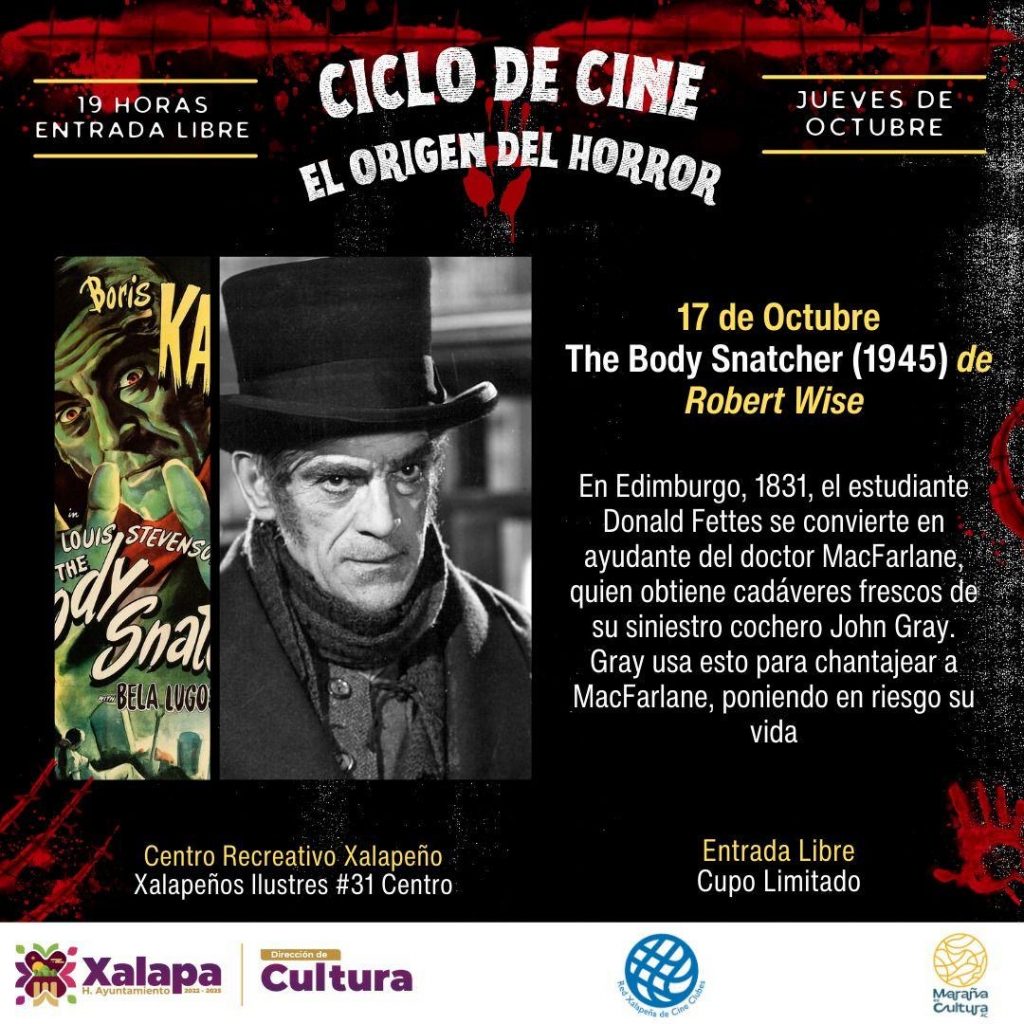 A las 19:00 horas en el auditorio de la IMAC, Jorge Angulo dirigirá la conferencia con causa: “¿Para qué vivimos?”; el Teatro J.J. Herrera albergará la obra “Las sillas”, de Eugéne Ionesco, de Teatro Umbral y La Candileja; y en el CRX se exhibirá el filme “The body snatcher” (1945), de Robert Wise.