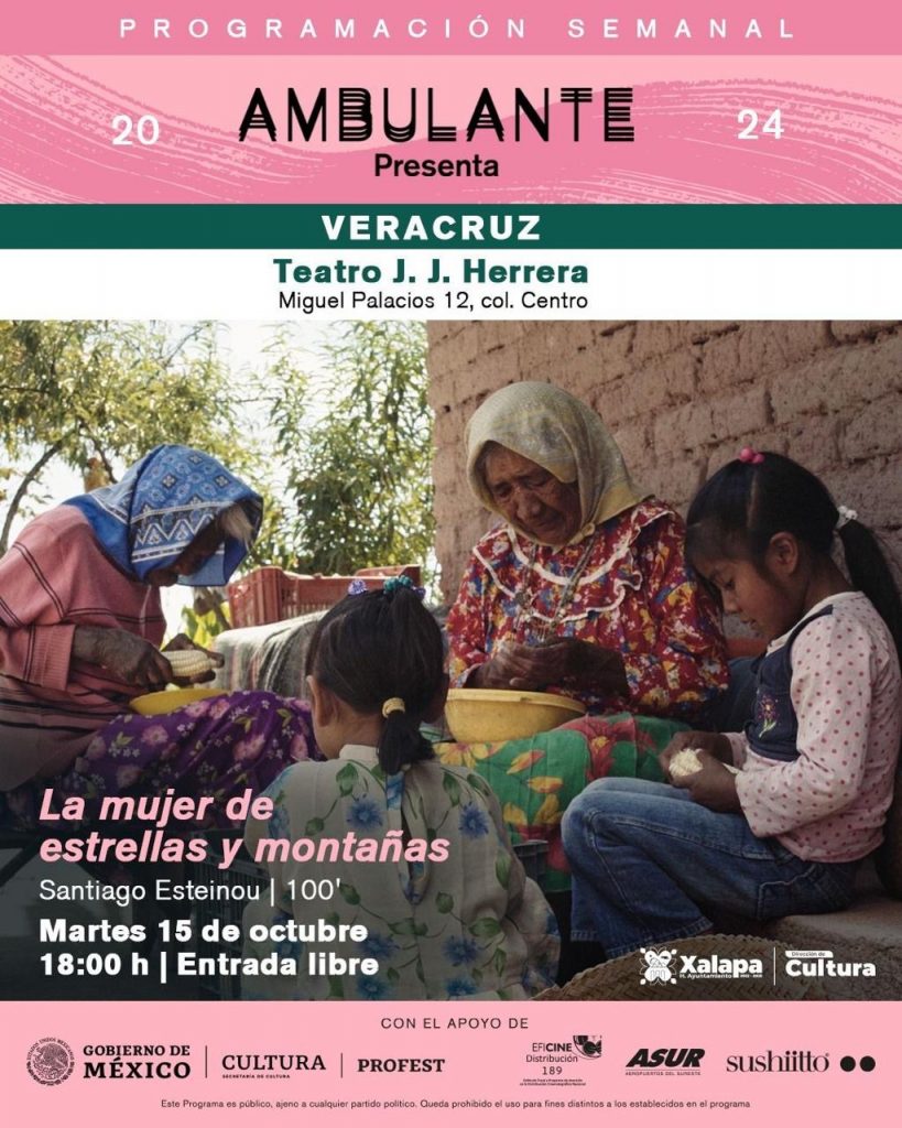El martes 15 de octubre a las 17:30 horas, en el Museo Casa de Xalapa, Mario Enrique Méndez Acosta encabezará la conferencia “Xalapa y sus transformaciones”; a las 18:00 horas en el Teatro J.J. Herrera, se proyectará el documental “La mujer de estrellas y montañas”, de Santiago Esteinou, como parte de la Gira 2024 de Ambulante.