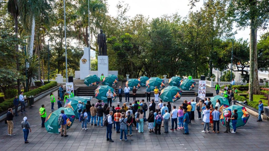 El Alcalde expuso que con la entrega de estas 50 sombrillas que tienen imágenes de sitios y atractivos turísticos que se encuentran en el municipio, se complementa la identidad turística de Xalapa, dignifica y brinda orden a un espacio que es visitado por muchas personas y donde se ofrecen diversos productos y servicios.