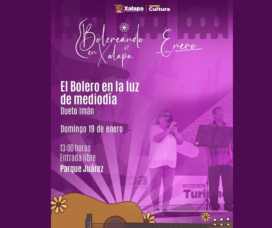 En el mismo sitio, a las 13:00 horas, se presenta el Dueto Imán, con su concierto Bolereando en Xalapa, y a las 17:00 horas, el tradicional “Danzón pa´l Corazón”, con música de la Orquesta Pauta Nueva.