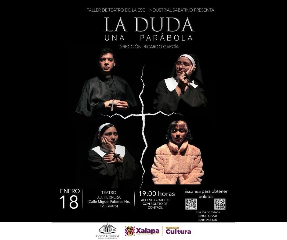 La obra “La Duda, una parábola”, con la dirección de Ricardo García, se presenta el 18 de enero a las 19:00 horas en el Teatro J. J. Herrera. La charla “Meditación y la paz interior”, se ofrecerá en el Muxa a las 11:00 y 12:30 horas.
