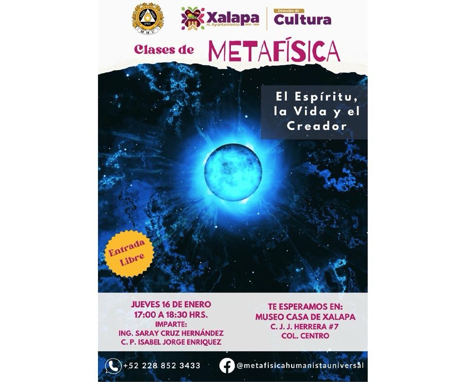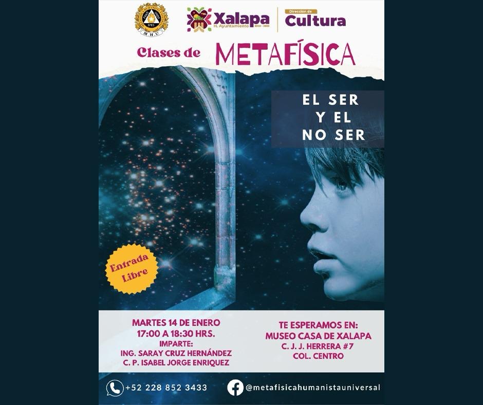 Este martes 14 de enero, a las 17:00 y 18:30 horas, Saray Cruz Hernández impartirá en el Museo Casa de Xalapa (Muxa) las clases de metafísica “El ser y el no ser”. El próximo 15, 16 y 17 de enero, en el Centro Recreativo Xalapeño (CRX) se tendrá la Muestra Colectiva de Arte Veracruzano.
