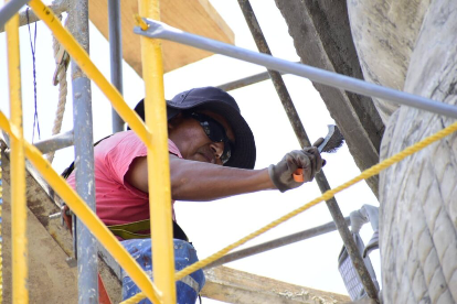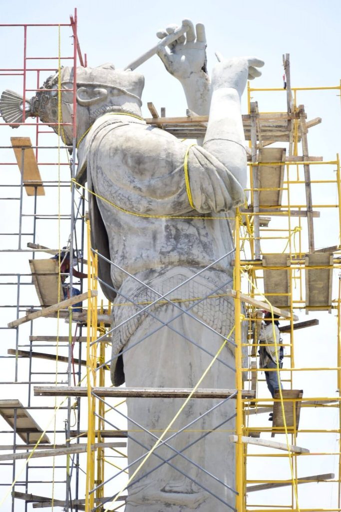 Se puede observar cómo han avanzado en los trabajos de rehabilitación del Monumento al Volador, obra del gran maestro Teodoro Cano García y que desde hace varios días es atendida para devolverle su belleza y reconstruir partes que presentan daños.