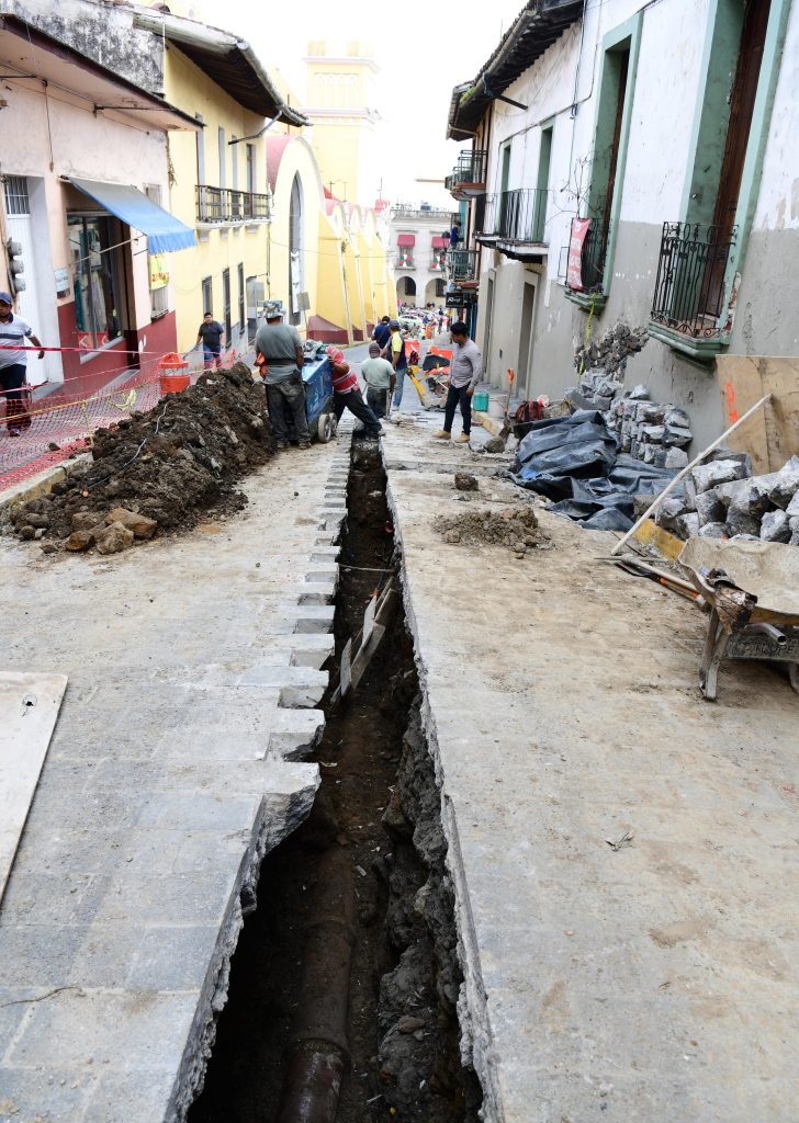 Xalapa, Ver.- Con la orientación del Instituto Nacional de Antropología e Historia (INAH), personal de la Dirección de Obras Públicas, en coordinación con la Comisión Municipal de Agua Potable y Saneamiento (CMAS), continúa con los trabajos de reparación de una red sanitaria de ocho pulgadas en la calle Revolución, entre Enríquez y Juárez.