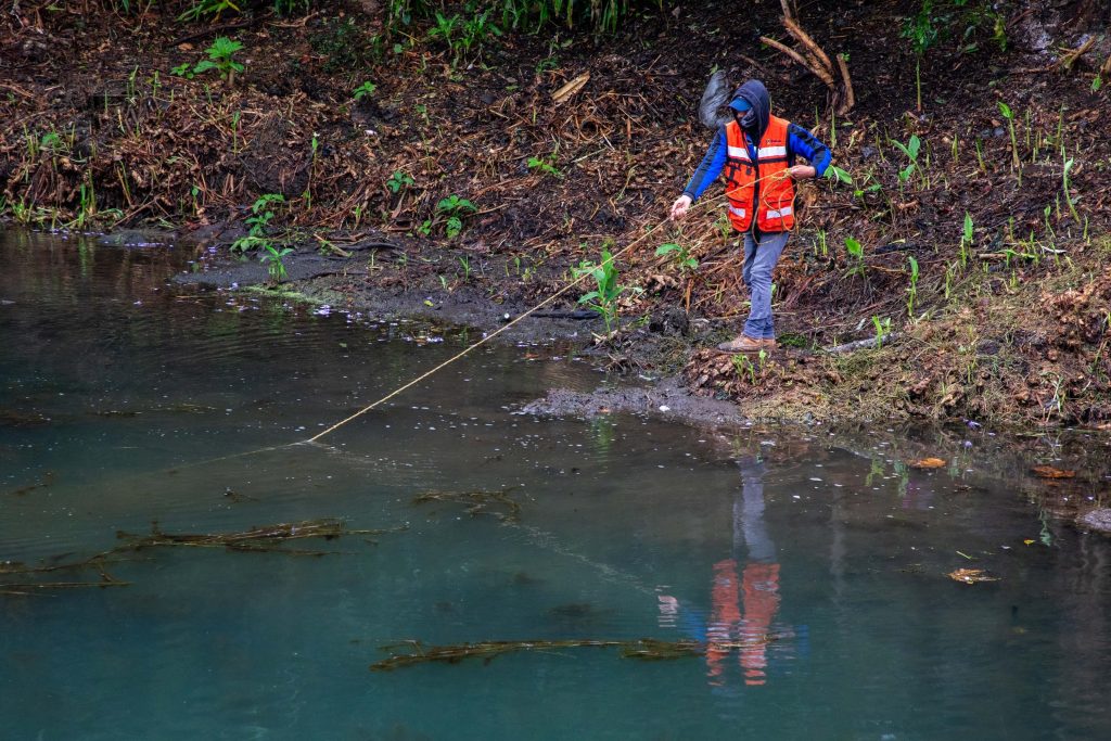 Además, se está utilizando una malla para quitar la “nata” y el material flotante.
