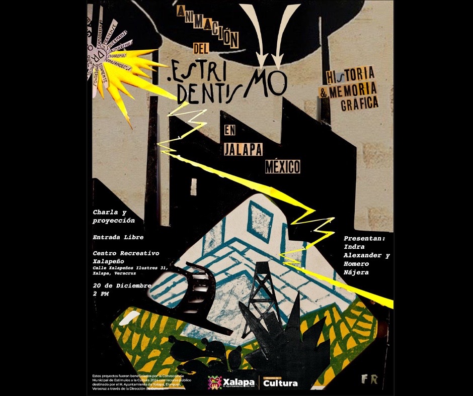 A las 14:00 horas, en el CRX, se presentará “Animación del estridentismo en Xalapa. México”, uno de los proyectos beneficiados con la Convocatoria Estímulos a la Cultura 2024. Se trata de una propuesta de Indra Alexander y Hómero Nájera.