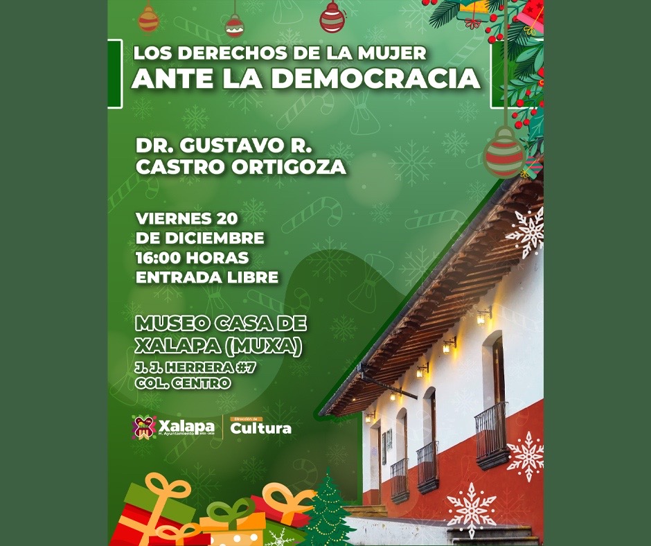 En el Museo Casa de Xalapa, a las 16:00 horas, se impartirá la charla “Los derechos de la mujer ante la democracia”, por el doctor Gustavo R. Castro Ortigoza. A las 18:00 horas, en el Museo de la Música Veracruzana, se presentará el ciclo de piano Jóvenes Pianistas en Xalapa.