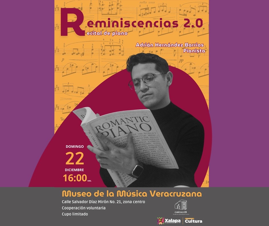 A las 12:30 horas se realizará una Gala Navideña, a cargo de la escuela Ballet Royal Xalapa, y a las 16:30 horas, la presentación de “El Cascanueces”, de esta misma escuela, en el mismo recinto. A las 16:00 horas, en el Museo de la Música Veracruzana se tendrá el recital de piano Reminiscencias 2.0.