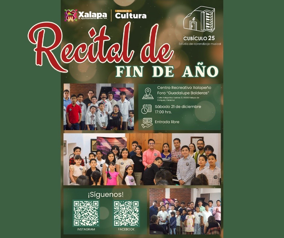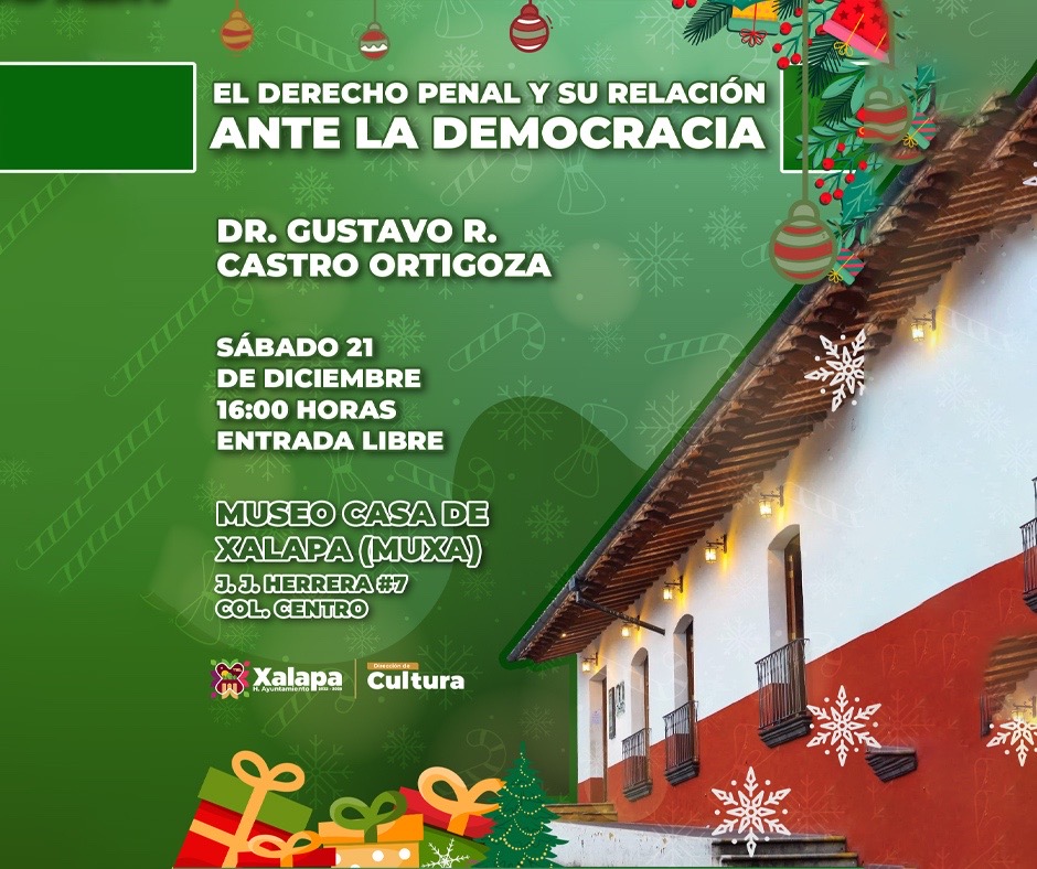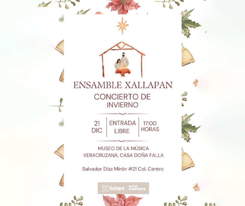 En el Museo Casa de Xalapa, a las 16:00 horas, se impartirá la charla “El derecho penal y su relación ante la democracia”. A las 17:00 horas, en el CRX se tendrá el recital de fin de año de Cubículo 25; en paralelo, en el Museo de la Música Veracruzana se presentará el Ensamble Xallapan, con un concierto de invierno. En la iglesia San Isidro, Grace y Miguel participan en el programa “Din, Don, Dan”, a las 20:00 horas.
