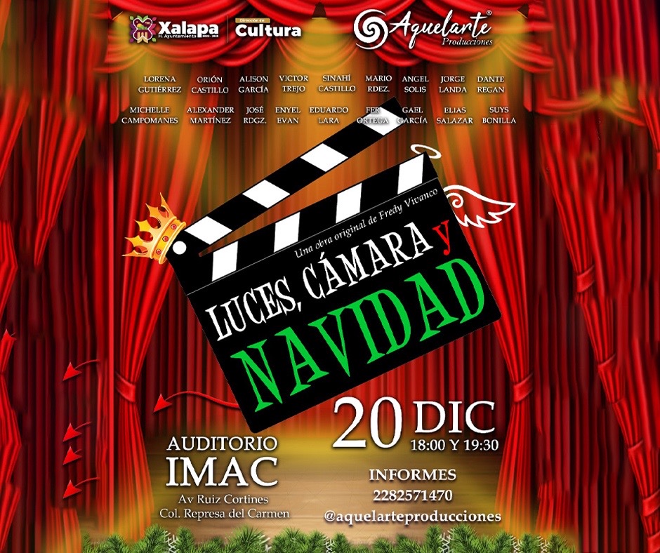 A esta misma hora, en el CRX, se tendrá el Festival Navideño de la Academia Nacional e Internacional de Poesía. En el auditorio de la IMAC, se presenta la obra “Luces, cámara y navidad”, por la compañía Aquelarte Producciones, a las 18:00 y 19:30 horas.