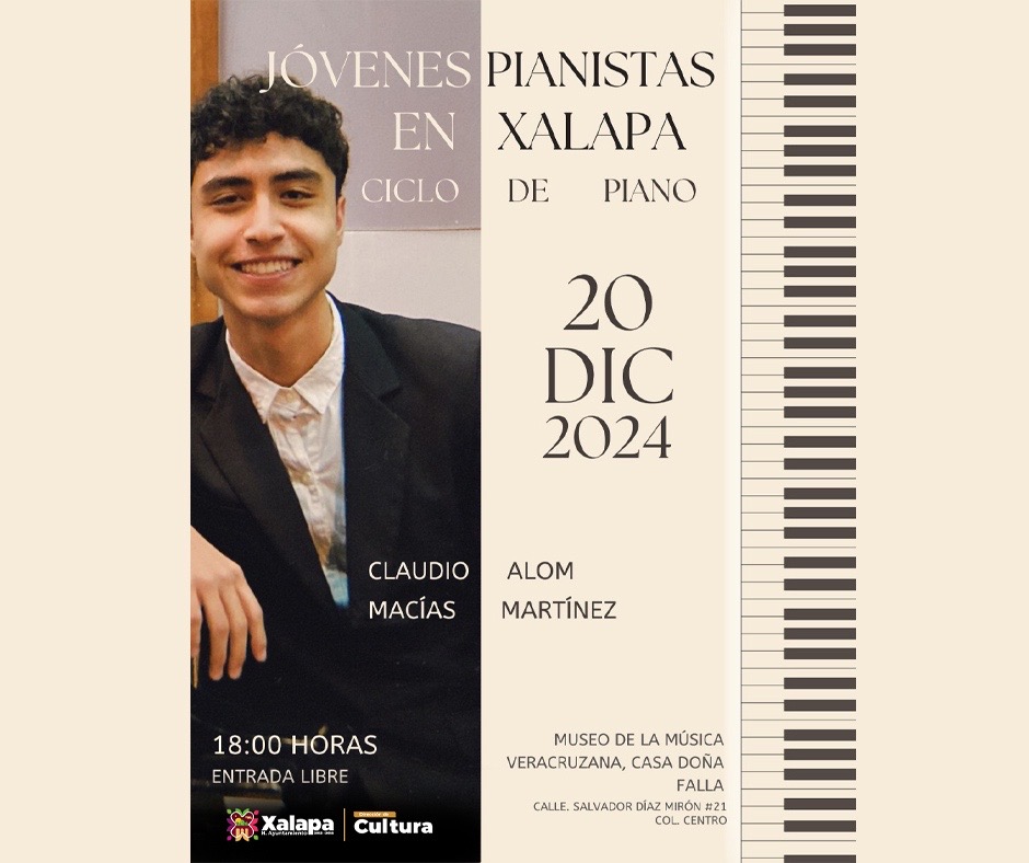 A la par, en el Museo de la Música Veracruzana, se tendrá Significaciones en la Sonatina Meridional con “El sur en Ponce”, así como el recital de guitarra del doctor Gustavo R. Castro Ortigoza, en el Museo Casa de Xalapa. En la iglesia de San Isidro se desarrollará el programa “Din, Don, Dan”, con el Grupo Kimet, a las 20:00 horas.