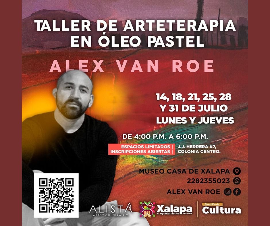 Este lunes a las 16:00 horas, en el Museo Casa de Xalapa (Muxa), se realizará el taller de Arteterapia en óleo pastel, impartido por Alex Van Roe. A las 17:00 horas, en el Centro Recreativo Xalapeño (CRX), se presentará la Muestra de Artes Visuales IFXA 2025. Más tarde, en el Muxa, continuará el taller de verano “Danza árabe terapéutica, a través del velo”.