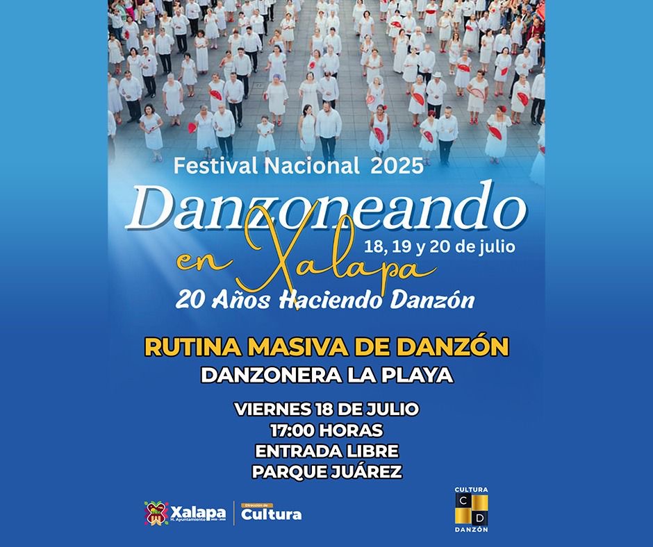 A las 17:00 horas, en el Parque Juárez, se llevará a cabo la Ruta Masiva de Danzón, con la Danzonera La Playa, como parte del Festival Nacional Danzoneando en Xalapa 2025.