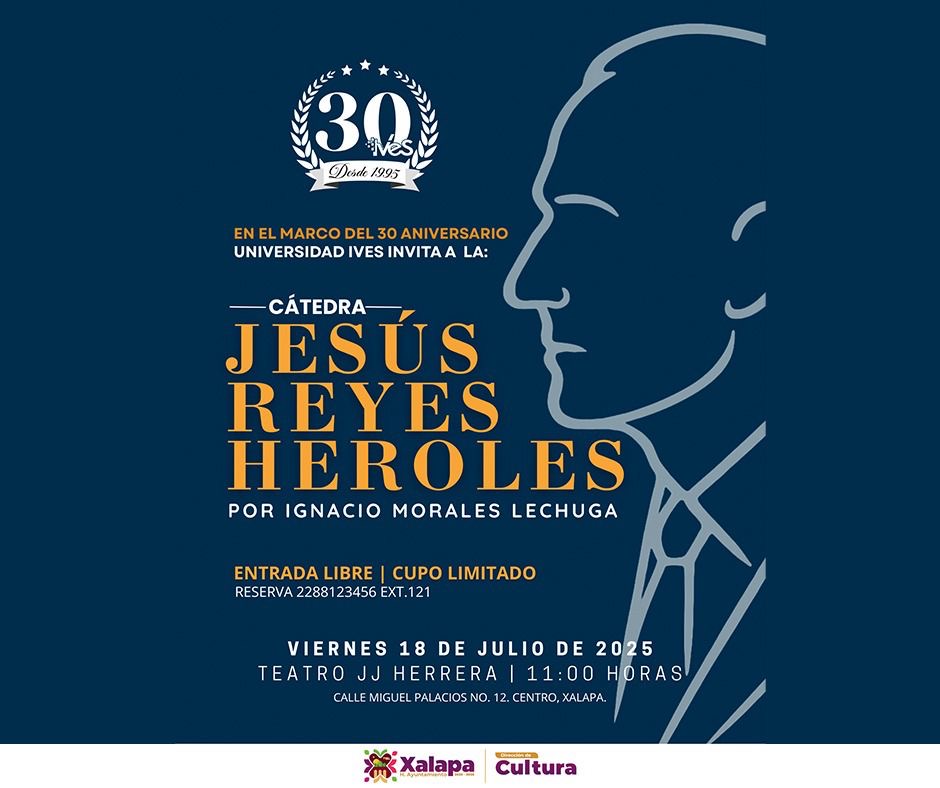 En el Teatro J. J. Herrera, a las 11:00 horas, se ofrecerá la cátedra “Jesús Reyes Heroles”, como parte del 30 aniversario de la Universidad IVES.