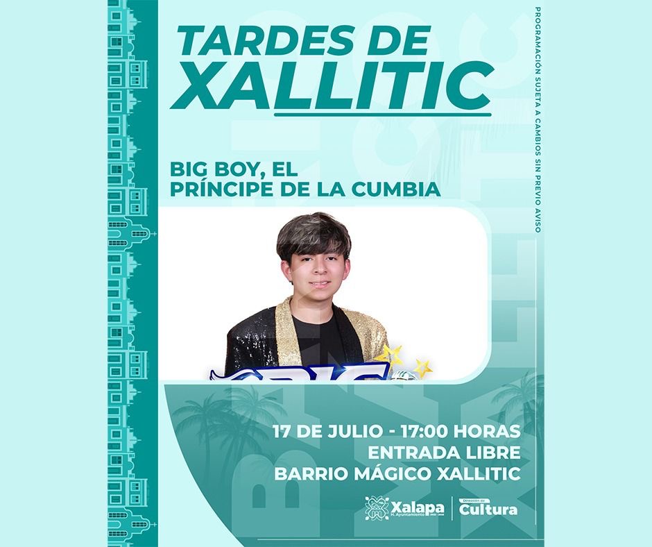A las 17:00 horas, en el Barrio Mágico de Xallitic, se presentará Big Boy, el Príncipe de la Cumbia. A las 18:00 horas, el Museo de la Música Veracruzana será escenario del concierto del Taller de Guitarra, y en el CRX, se proyectará la película “The War of the Worlds”, como parte del ciclo Clásicos de Ciencia Ficción.
