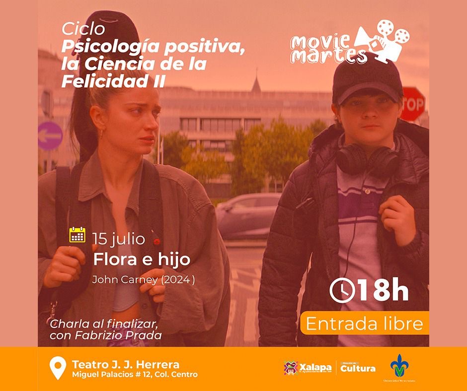 A las 18:00 horas, en el Teatro J. J. Herrera, continuará el ciclo de cine Psicología Positiva: la Ciencia de la Felicidad II, con la proyección de la película “Flora e hijo”, seguida de una charla con Fabrizio Prada.