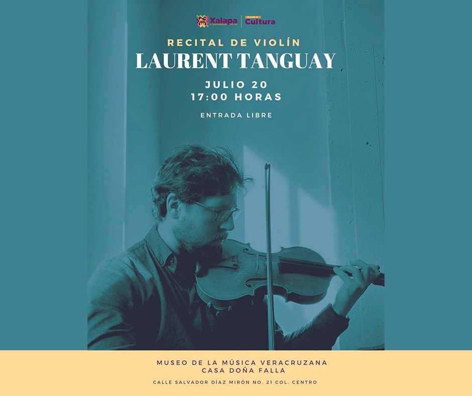 A las 17:00 horas se realizarán el recital de violín de Laurent Tanguay en el Museo de la Música Veracruzana, y el tradicional “Danzón pa’l Corazón”, en el Parque Juárez, con la Orquesta Pauta Nueva.