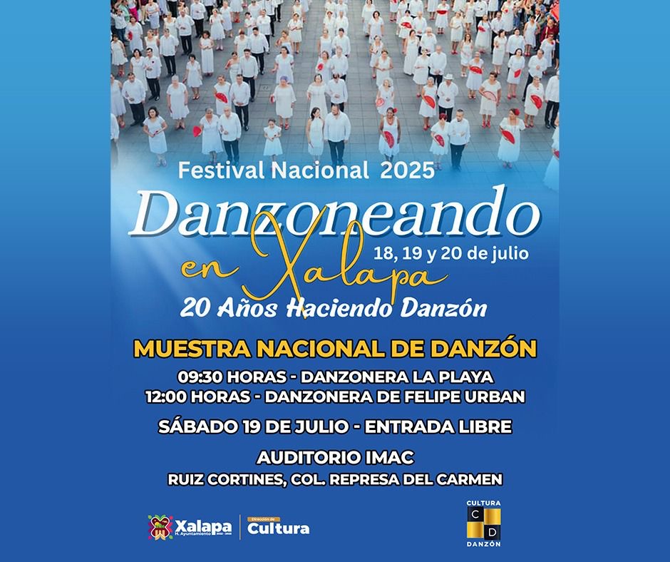 El sábado, a las 9:30 horas, en el auditorio de la IMAC, continuará la Muestra Nacional de Danzón con la Danzonera La Playa y la Danzonera de Felipe Urban. A las 10:00 horas, en la Plaza San José, se celebrará la Feria Sinergia Xalapa, con un foro artístico, productos locales, comida y artesanías.