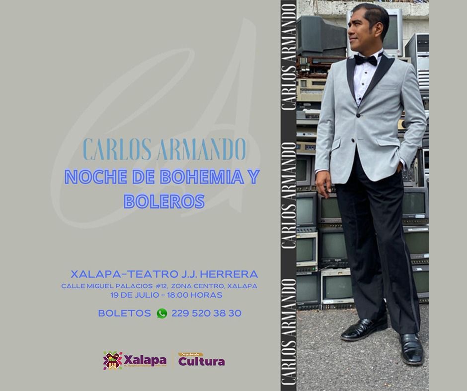 Paralelamente, en el Teatro J. J. Herrera, Carlos Armando ofrecerá una noche de bohemia y boleros.