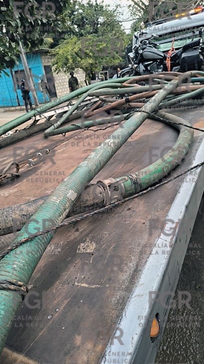 En el cateo, las autoridades detuvieron a César “N”, Óscar “N” y Marco “N” y se aseguraron dos vehículos tipo pipa, dos motobombas para agua, una bomba eléctrica, una motocicleta, 16 mil 700 pesos, nueve mangueras de distintas medidas, dos teléfonos celulares y el inmueble, en el que se encontraba un pozo de agua, del cual presuntamente se extraía agua sin contar con la autorización del organismo correspondiente.