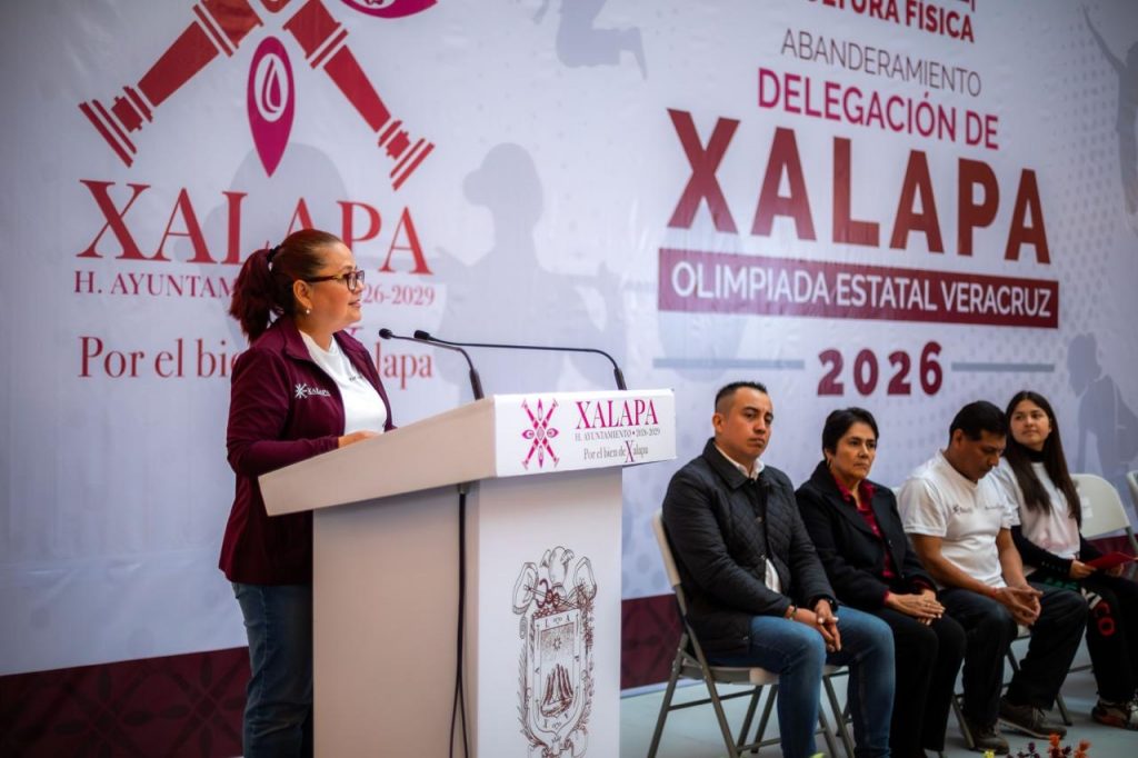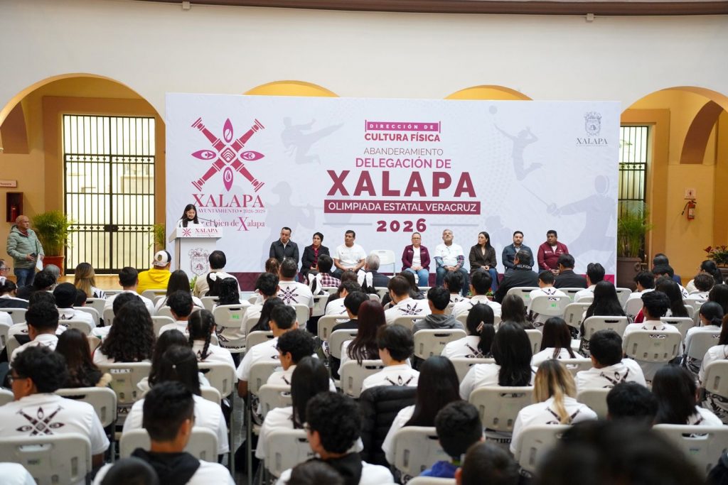 Xalapa, Ver., 11 de febrero de 2026.- “En el Gobierno Municipal creemos que el deporte es una herramienta fundamental para transformar a nuestra sociedad, ya que aleja de la violencia y genera proyectos de vida positivos”, destacó la Alcaldesa, Lic. Daniela Griego Ceballos, durante la ceremonia de abanderamiento de la Delegación de Xalapa que participará en la Olimpiada Estatal Veracruz 2026.