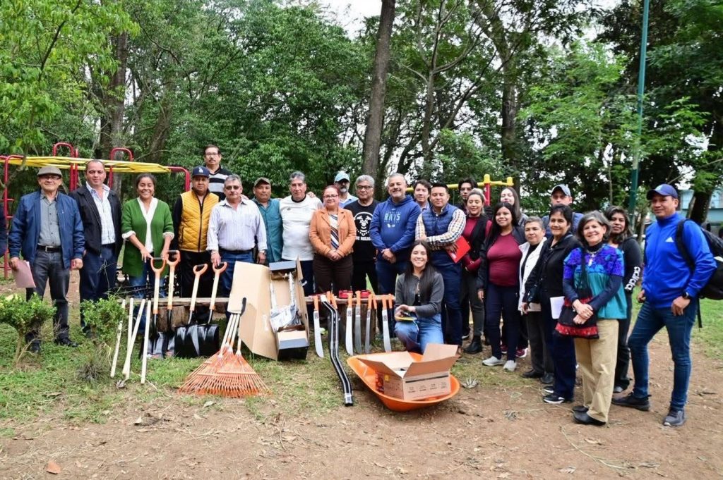 Posteriormente, la alcaldesa electa realizó la entrega de un kit de herramientas a los vecinos del Parque Ecológico Ferrocarrilero, quienes de manera voluntaria se encargan del mantenimiento del área verde. El espacio, con una extensión de siete hectáreas, es considerado un importante pulmón ecológico de la ciudad y un punto de recreación y ejercicio para cientos de xalapeños.