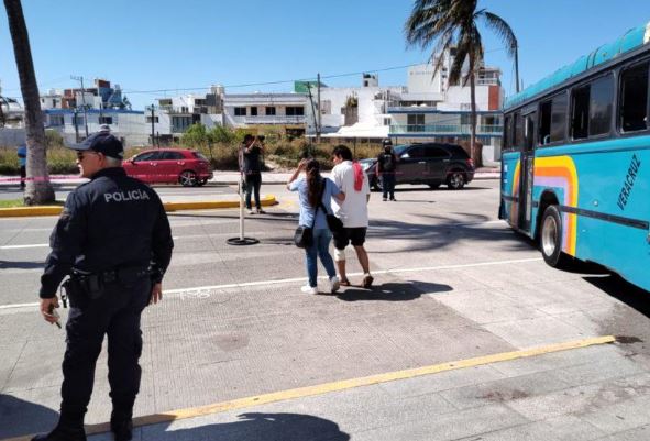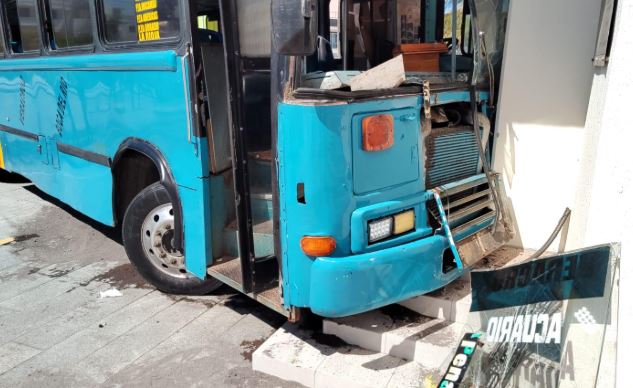Debido a falla mecánica autobús se impacta en fachada de Escuela Náutica de Veracruz