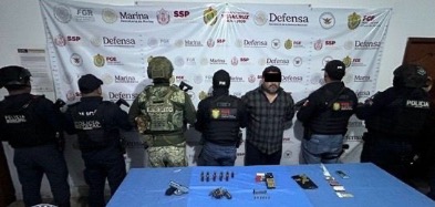 Por el delito de portación ilegal de armas de fuego, fueron detenidas cinco personas y se les decomisaron cinco armas de fuego cortas, una de ellas hechiza, así como cargadores, cartuchos útiles, siete dosis de presunto cristal, dinero en efectivo, un dron, básculas, teléfonos móviles, un automóvil y dos motocicletas sin reporte de robo.