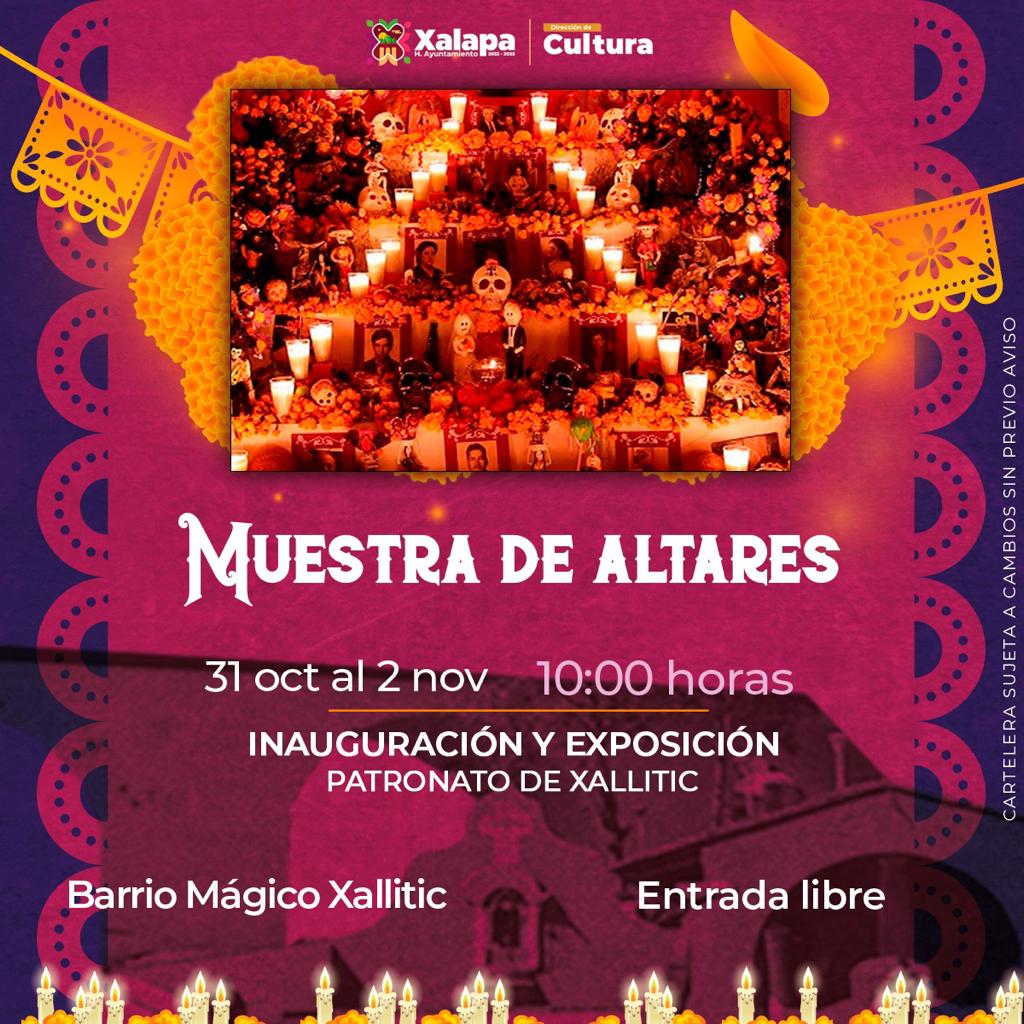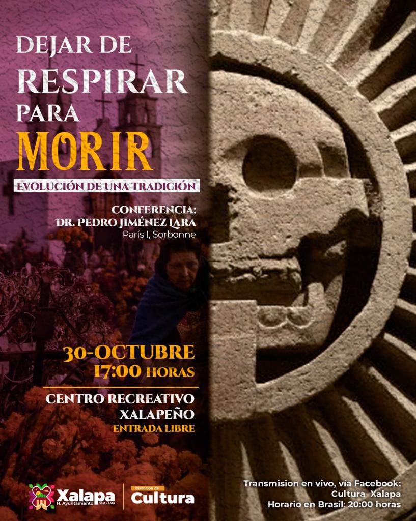 El lunes 30 de octubre a las 17:00 horas en el CRX, Pedro Jiménez Lara ofrecerá la conferencia “Dejar de respirar para morir, evolución de una tradición”; y el 31 de octubre arrancará la “Ruta fantasmal” en el Panteón Xalapeño, así como la Muestra de Altares en el Barrio Mágico de Xallitic a las 10:00 horas; el 24, se desarrollará el Festival Cultural Mictlán a las 18:30 horas.