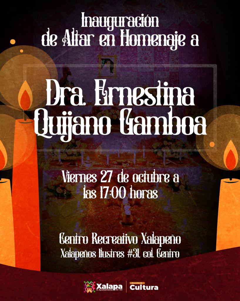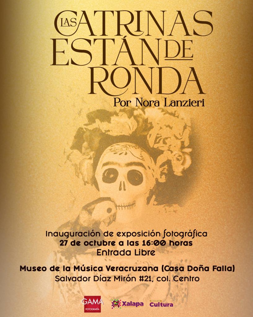 El viernes 27 de octubre a las 16:00 horas en el Museo de la Música Veracruzana, Nora Lanzieri inaugurará su exposición “Las catrinas están de ronda”; a las 17:00 horas en el CRX, se inaugurará el altar de muertos a la Dra. Ernestina Quijano Gamboa; a las 18:00 horas en el Teatro J.J. Herrera, se presentará la obra “Calaveritas, brujas y café”; a las 19:00 horas, Eduardo Robledo Romero inaugurará la exposición “Cuando la vida nos alcance”; y a las 19:30 horas en el auditorio de la IMAC, se realizará el Concierto “Por mi raza”.
