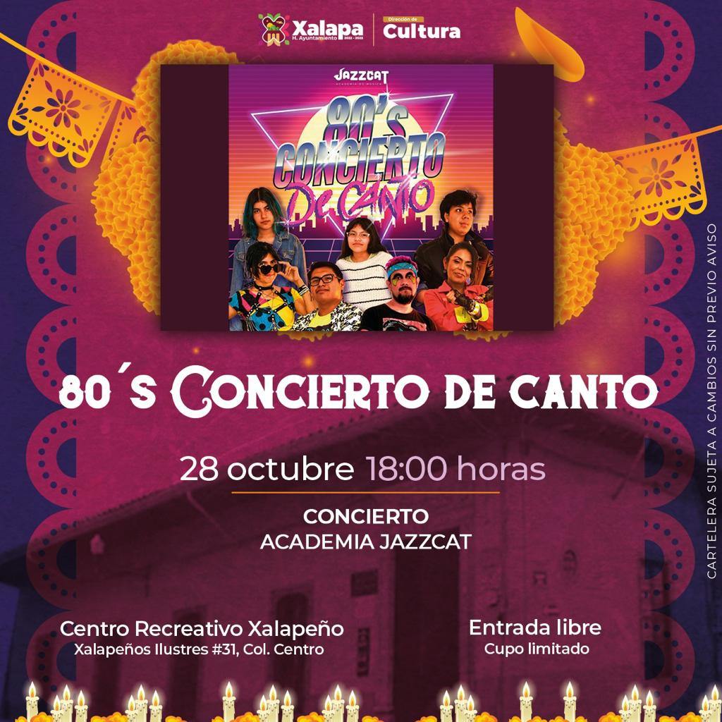 El sábado 28 de octubre a las 17:00 horas en el Museo Casa de Xalapa, “A piacere Ensamble” ofrecerá el recital “Reflexiones sonoras veracruzanas”; a las 18:00 horas en el CRX, la Academia Jazzcat presentará el “80’s Concierto de Canto”; a las 19:00 horas en el Teatro J.J. Herrera, Primer Circuito Escénico realizará “Hilvanadas con danza”.