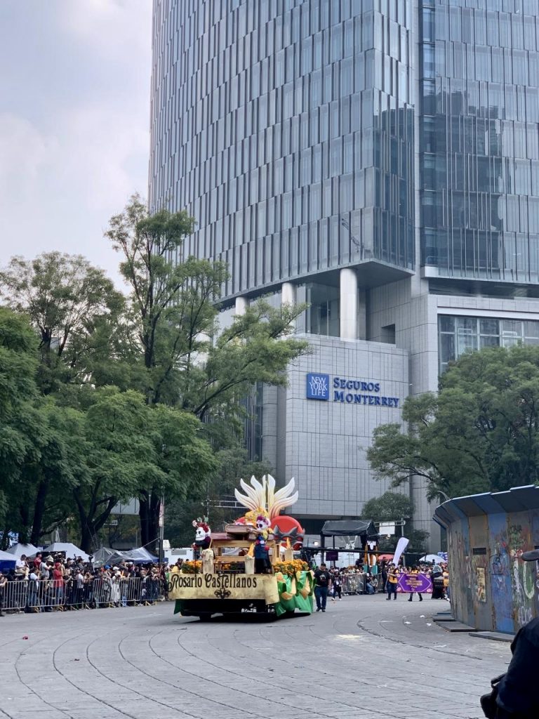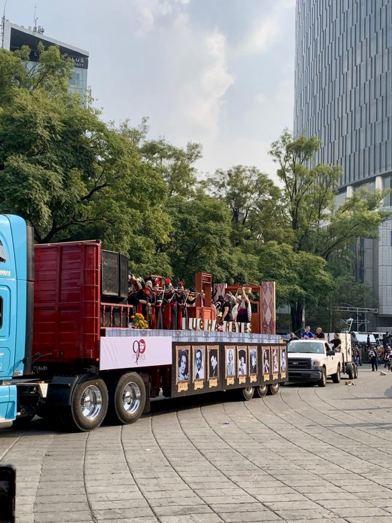 El carro alegórico en honor a la cantante Lucha Reyes hace su recorrido por calles de la capital del país, acompañado de música mexicana.