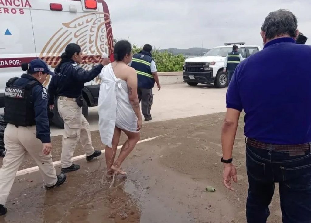 Elementos de seguridad que patrullaban la zona costera de Coatzacoalcos detuvieron a una mujer que se introdujo al mar completamente desnuda.