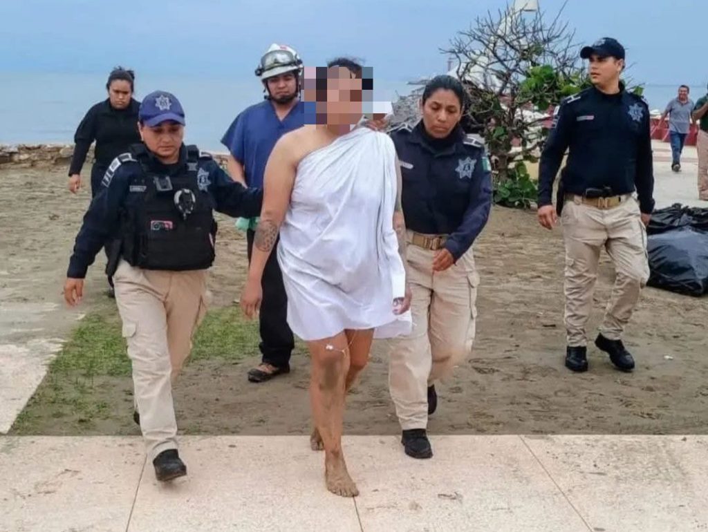 Detienen a mujer que se bañaba desnuda en el mar en Coatzacoalcos