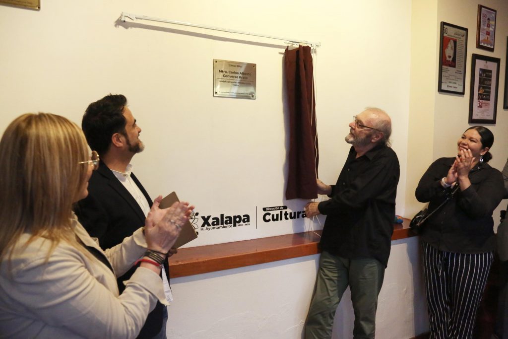 Xalapa, Ver.- Como un reconocimiento a la trayectoria de un referente cultural, funcionariado municipal llevó a cabo la develación de una placa en honor al maestro Carlos Alberto Converso Prato, Medalla al Mérito Artístico “Juan Herrera Vázquez ‘Juanote’ 2024″.