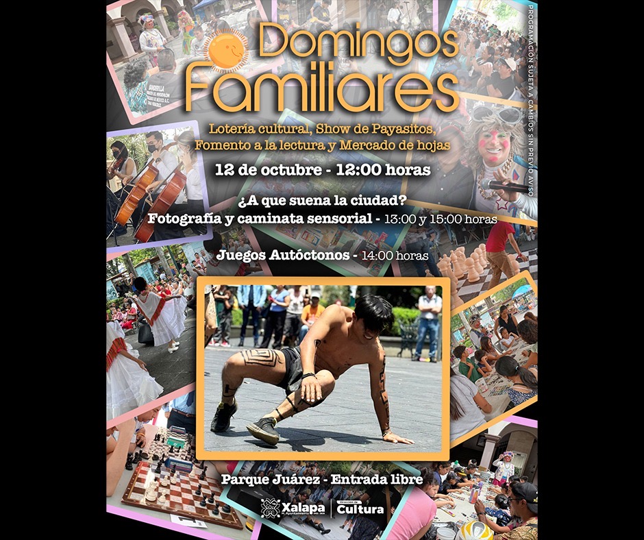 El domingo, a las 10:00 horas, en el CRX, iniciará un taller de Encuadernación Intermedia. A las 12:00 horas se tendrá el programa “Domingos Familiares”, con Lotería Cultural, Show de Payasitos, Fomento a la lectura con Mercado de Hojas, además de fotografía, caminata sensorial y juegos autóctonos.