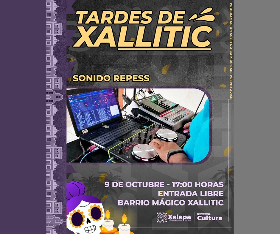 El jueves, en la Tardes de Xallitic, se presentará el Sonido Repess, a las 17:00 horas. Una hora más tarde, en el Museo de la Música Veracruzana, se presentará el grupo Sonos con el concierto “Caleidoscopio musical latinoamericano”.