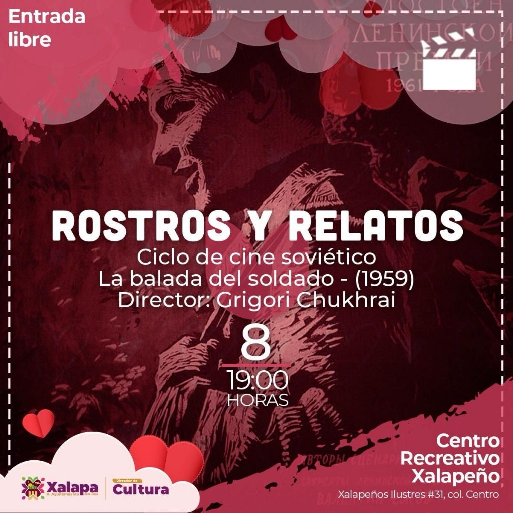 Todos los jueves de febrero a las 19:00 horas podrá disfrutarse en el Centro Recreativo Xalapeño del ciclo “Rostros y Relatos: Cine Soviético”, el cual es reconocido por su profunda exploración de la condición humana, su compromiso con la narrativa histórica y su capacidad para provocar reflexión y emoción en igual medida.