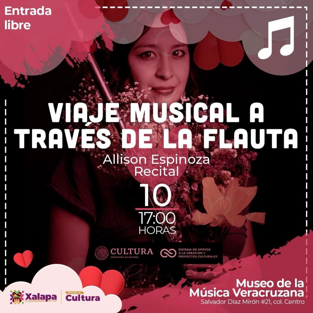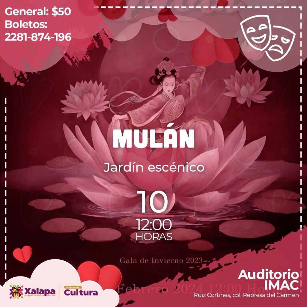 Para el sábado 10 de febrero a las 11:00 horas en el Museo de la Música Veracruzana, está pautado el taller de acuarela a cargo de Raquel Arcos; a las 12:00 horas en el Auditorio de la IMAC, el Jardín Escénico presentará la obra de teatro “Mulán” y a las 17:00 horas, Alisson Espinoza ofrecerá el concierto “Viaje Musical a través de la flauta.