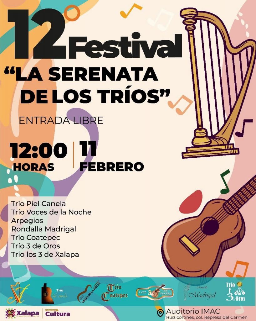 Este mismo día a las 10:00 horas en el auditorio de la IMAC, Holística Xalapa realizará una jornada de Terapias Complementarias y a las 12:00 horas se llevará a cabo “La serenata de los Tríos”.