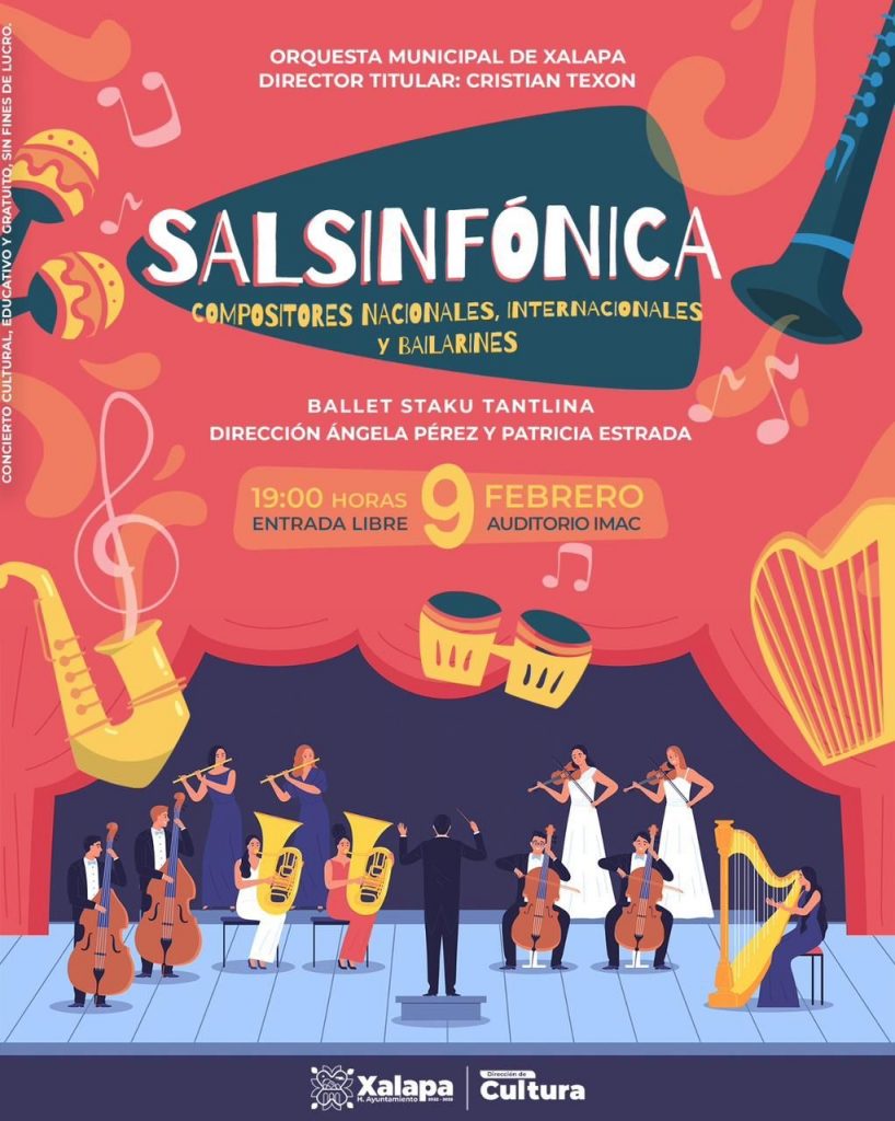 Una hora más tarde, en el Auditorio de la IMAC, la Orquesta Municipal de Xalapa (OMX) ofrecerá el concierto “Salsinfónica”, con un repaso musical de compositores nacionales e Internacionales, y la participación de bailarines del Ballet Staku Tantlina.