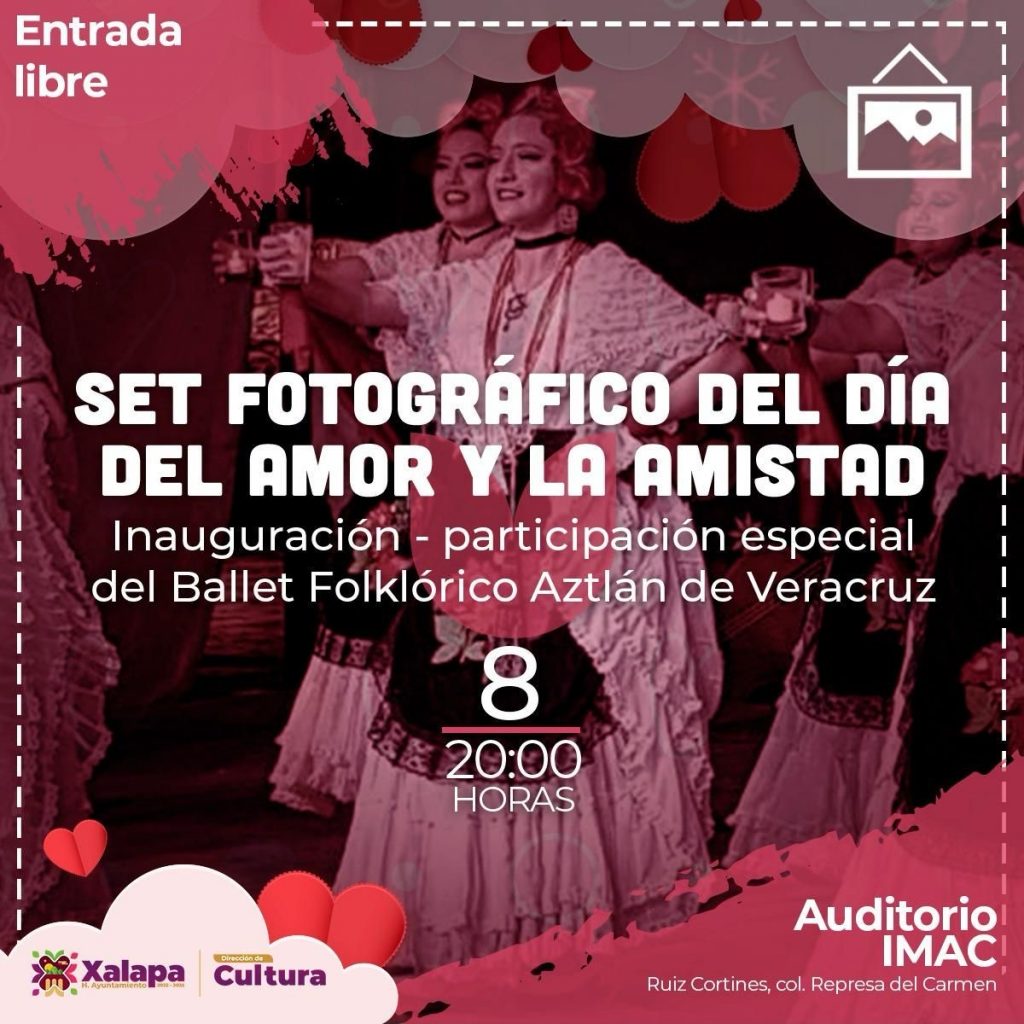 Este mismo día, pero a las 20:00 horas en el Auditorio de la IMAC, se inaugurará el Set fotográfico del día del amor y la amistad, con la participación especial del Ballet Folklórico Aztlán de Veracruz.