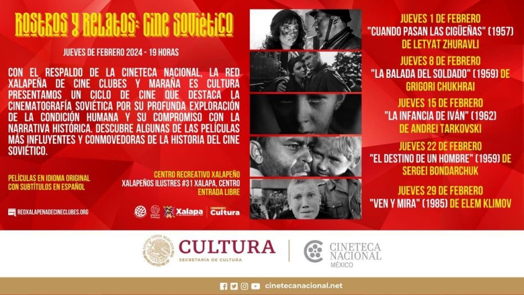 La proyección de estas emblemáticas, influyentes y conmovedoras historias del séptimo arte, que preparó la Dirección de Cultura en colaboración con la Cineteca Nacional, la Red Xalapeña de Cine Clubes y Maraña es Cultura A.C. permitirá al público sumergirse en la riqueza de la herencia cinematográfica de la Unión Soviética.