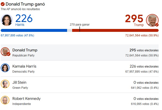 Donald Trump expresidente de EE.UU. y candidato republicano volverá a la Casa Blanca tras vencer en las elecciones a Kamala Harris, según la proyección de CNN. Trump, quien fue presidente entre 2017 y 2021, regresa a la Presidencia tras una campaña marcada por la retórica antiinmigrante.