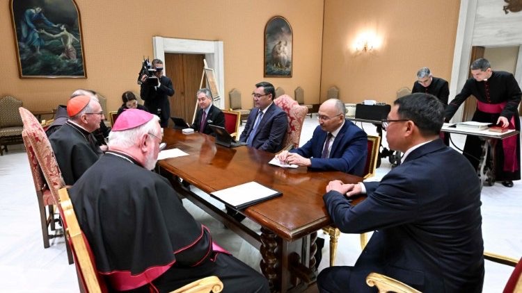 Francisco y Zhaparov se reunieron temprano en la mañana durante unos 20 minutos y luego, según el protocolo, el encuentro del presidente continuó en la Secretaría de Estado con el cardenal Pietro Parolin y monseñor Paul Richard Gallagher, secretario para las Relaciones con los Estados y las Organizaciones Internacionales. Durante la “cordial conversación”, informa la Oficina de Prensa de la Santa Sede, “se pusieron de relieve las buenas relaciones entre la Santa Sede y Kirguistán”, en particular en la “colaboración mutua en el ámbito sanitario, educativo y cultural y en algunos aspectos de la vida de la Iglesia local”. A continuación, tuvo lugar “un intercambio de opiniones sobre la actualidad internacional, con especial atención a los conflictos en curso y las cuestiones humanitarias, destacando la importancia de un compromiso urgente para la promoción de la paz”.